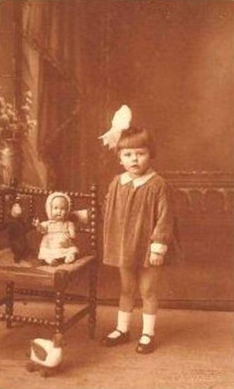 Op deze foto waarschijnlijk een neef of nicht van Dina Sterk-Visser. Johannes Sterk vertelde zijn dochter Dina Schrijer-Sterk dat ze te maken zouden hebben met de familie ter Velde. Wie weet wie deze mensen zijn ?