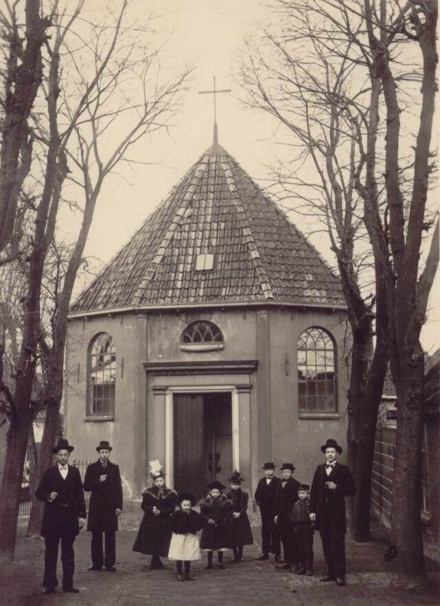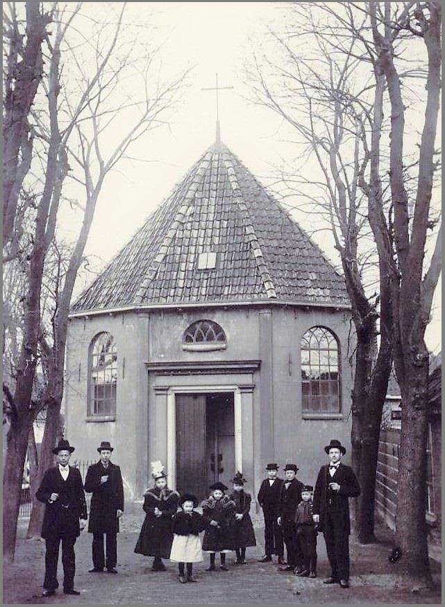Deze foto is gemaakt voor de toenmalige Katholieke kerk omstreeks 1899/1900. Deze kerk stond in Benedenschans op de plek waar later Us Thus gebouwd werd.