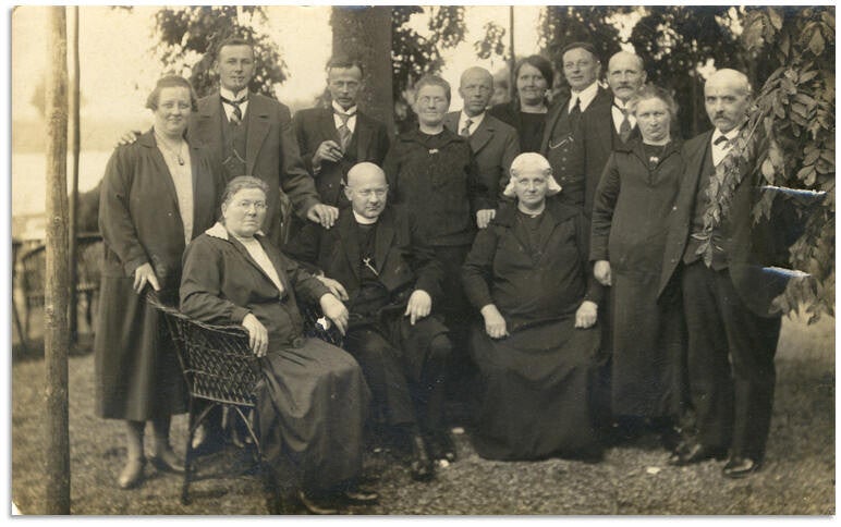 V.l.n.r. staand: Agatha Mulder, Anne van den Berg, Sipke van den Berg, Maria Nijholt, Andries van den Berg, Sjoukje de Jager, Willem van den Berg, Gerard van den Berg, Martzen Adema, Jan Bosma. Zittend: Inschje Nijholt, Inne van den Berg, Saakje van den Berg.