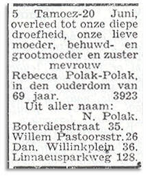 Het gezin Weduwe Rebekka Polak-Polak, woonde op: Willem Passtoorsstraat 26 Amsterdam.