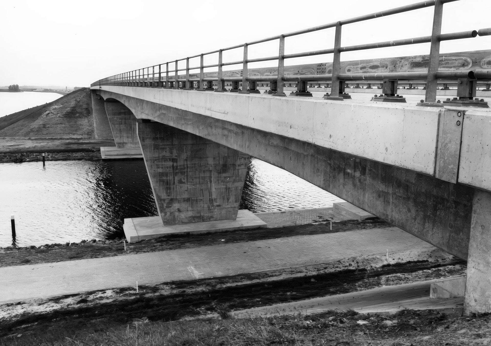 Realisatie van de constructie van de grootste brug over het Tjeukemeer in Friesland.