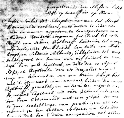 Mijn volgende steen is een koopakte van 27 september 1735, waarin Jaitze de twee-kamer woning verkoopt. Er staat ook in dat Joucke Fetses en Hylk Zytses beiden zijn overleden. Het zou kunnen zijn dat Jaitze zijn erfdeel had gekregen. Mogelijkerwijs heeft de plotselinge aflossing van die twee leningen in Februari 1732 daarmee te maken. Dat zou overigens wel betekenen dat Joucke over de negentig jaar oud geworden zou moeten zijn. Overigens vind ik het bewijs dat de werf toen op Jaitze's naam kwam te staan, pas in het eerstvolgende Reëelkohier, dat van 1746. Daaruit is ook op te maken dat de andere werfbaas, Jan Jacobs van der Werf, overleden was. Zijn weduwe probeerde tevergeefs de werf te verhuren.