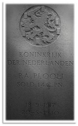De soldaat Plooij raakte ernstig gewond, mogelijk door een mortier- of handgranaat. Hij had een weggeschoten kaak en één of meer verwondingen aan de rug. Hij overleed, mogelijk aan complicaties, op 20 mei 1940 in het hospitaal Ziekenverpleging te Dordrecht.