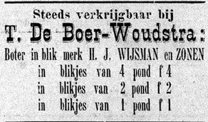 Met Dirk de Boer ging het goed, hij had een prima baan, maar zijn vrouw Tite had moeite met haar leven als huisvrouw. Ze had haar handen vol aan haar steeds uitbreidende kinderschaar, maar ze droomde vaak, dat ze actiever kon zijn als zelfstandige vrouw in het zakenleven. Na hun aankomst in 1874 in Suriname had het echtpaar nog vier zonen Evert, Dirk, André en Anton en een dochter (Catherine) gekregen. Maar na de geboorte van Catherine in 1883 was het zover. Tite nam met haar man het besluit vanuit hun huis in de Jodebreestraat in Paramaribo, boter van het merk H.J. Wijsman en Zonen in rood-groen-gouden blikken te verkopen, waarbij Dirk de inkoop zou verzorgen en Tite de verkoop.