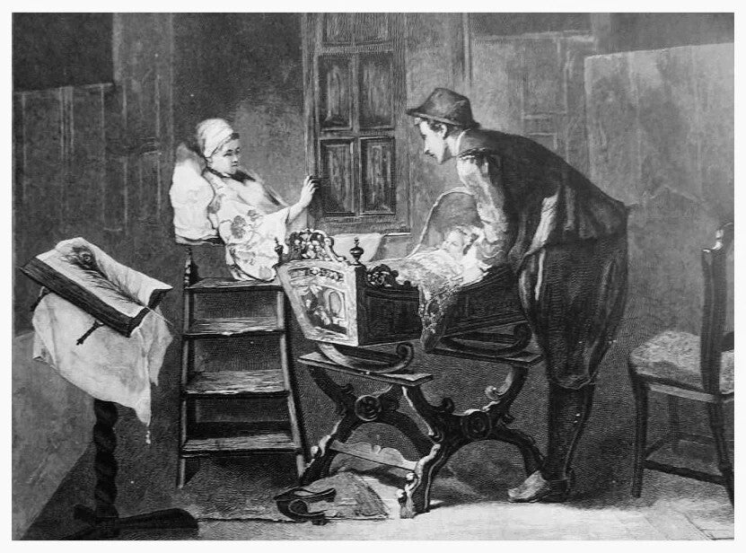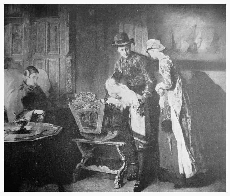 Kraambezoek, naar een schilderij van Chr. Bisschop.
