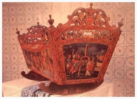 Opmerkelijke meubelstukken, die in geen Hindeloper pronkkamer mochten ontbreken, waren voorts nog de wale oppe walesoalder - de op een voetstuk geplaatste schommelwieg - de boven de deur aan een zolderingbalk hangende prikslede met polychroom snijwerk in het hakkebord en sterren, zon en maan aan de onderzijde geschilderd, en de kleurige. soms met verguldsel versierde, vierkante stoven met opengewerkte rozetten, sterren en soms ook het monogram der eigenares.