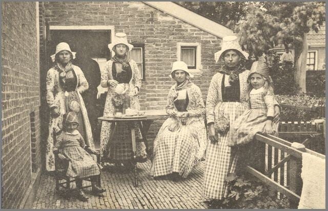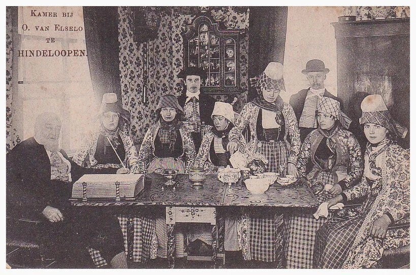 Achttien jaren eerder reeds hadden Roosjen, Kroese en Eekhoff in hun "Merkwaardigheden van Hindeloopen" geschreven over "de eigenaardige Vrouwen-kleederdracht, zoo als die hier voor 50 à 70 jaren algemeen was en thans nog zeldzaam gedragen wordt".