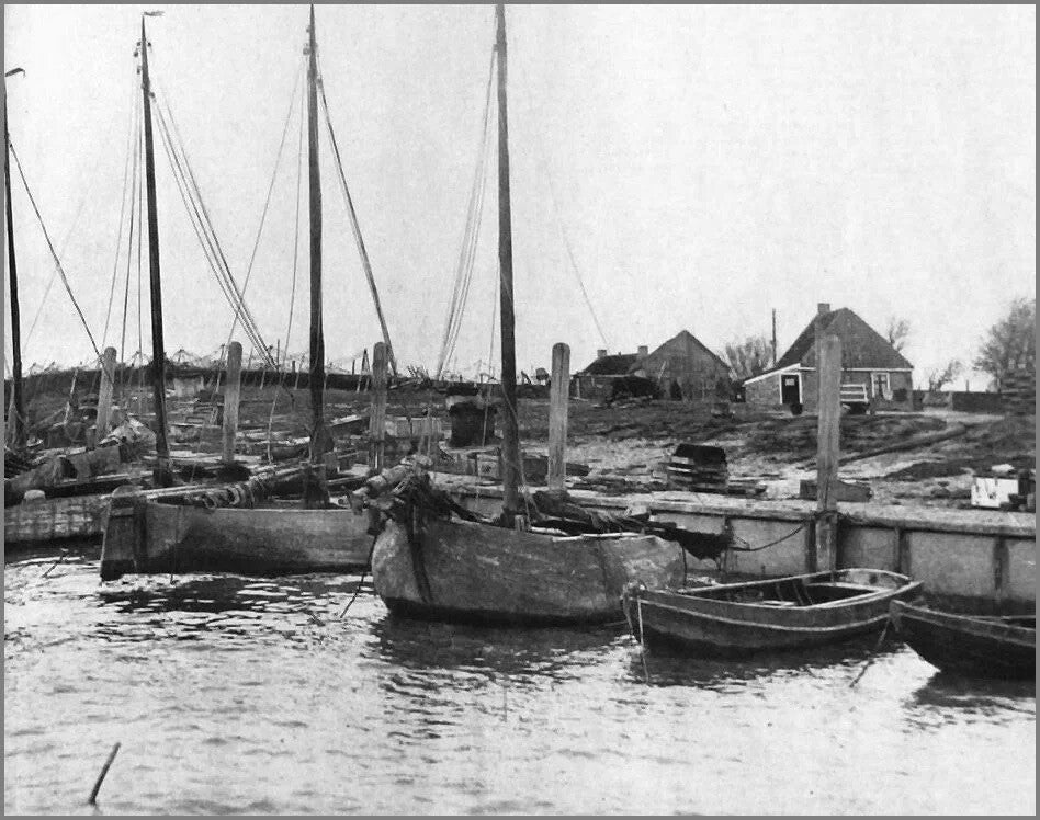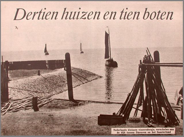 Bij het naderen van Laaxum hadden we bijna net zo'n gevoel als toen we Schokland voor het eerst zagen. Want is er niet een beetje overeenkomst tussen het eenzame Schokland en dat afgelegen vissersplaatsje, dat zo weinigen tot een bezoek uitlokt? Ja, Laaxum heeft, net als Schokland een zekere sfeer, die men duidelijk voelt op zo'n sombere, winderige avond, als de duisternis vroeger dan anders zich hult om de stille dingen der natuur, zo het ruizen van de zee duidelijker hoorbaar is en de wind uitgelaten stoeit met het touwwerk van de bonkende jollen in het kleine haventje.
