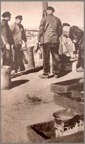 Het lijkt er niet veel op, dat vannacht de vaart druk zal worden. De goede tijd voor het palingvissen is nu anders wél gekomen en dikwijls trekken de vissers er tegenwoordig bij nacht op uit, omdat de paling bij donker veel gemakkelijker gevangen wordt dan overdag, wanneer het water helder is. Er is een behoorlijke aanvoer te Laaxum en de kopers weten het kleine vissersplaatsje óók wel te vinden, zodat het er aardig bedrijvig kan zijn.