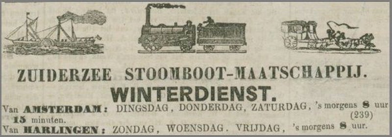 De lijn van Harlingen via Enkhuizen naar Amsterdam werd door deze rederij in juni 1828 geopend met de houten raderstoomboot PRINS FREDERIK. Deze onderneming stond gedeeltelijk onder directie van de Amsterdamsche Stoomboot Maatschappij te Amsterdam, welke in 1825 was opgericht door de bekende stoomvaartpionier Paul van Vlissingen.