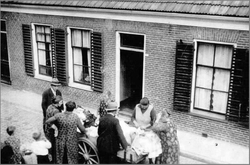- Sippie V-Schothorst De woning daar waar de mevr. in de lange jurk staat links met luiken daar ben ik geboren, ik ben in 44 geboren, er waren geen luiers, of ze hadden geen geld vandaar dat ik ruften om had van meelzakjes.