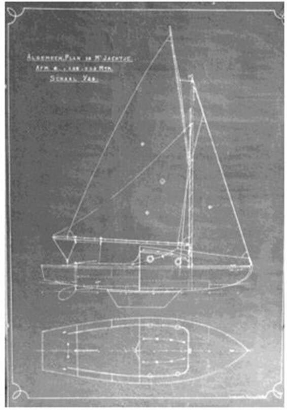 Arie maakt een ontwerp, een echte blauwdruk. Op zijn advies komt de mastkoker vóór het kajuitje en niet erbovenop, dat is sterker. Op de werf, waar het juiste gereedschap is, wordt de kiel gelegd, worden de spanten gebogen en wordt het raamwerk in elkaar gezet. Op een platte schuit verhuist het naar een plek op de wal achter de smederij. Daar wordt het in de winter van 1934/1935 door Harmen zelf afgebouwd met dunne platen van 2 mm, want hoe lichter het bootje, hoe sneller het zal willen zeilen. Voor de duurzaamheid worden de platen gegalvaniseerd. En zo bouwt Harmen van der Wolf aan zijn bootje.