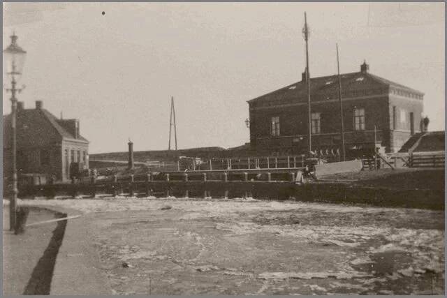 - Frans Visser uit Lemmer: Deze foto is op de plaats bij de oude spuisluis waar nu de benzinepomp van Slump is (Zeedijk1) aan het eind van de Schans/Vissersburen. Vroeger was bij de spuisluis ook een brug en een stukje remming ervoor, vlak in de buurt van 'De Houtmolen'.