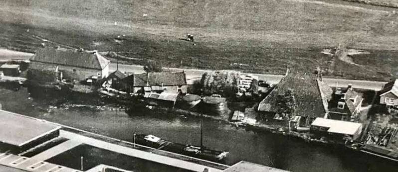 De oude smederij van Johannes v.d. Wolff, later van zijn zoon Harm v.d. Wolf, bij de oude spuisluis waar nu de benzinepomp van Slump is aan het eind van de Schans-Vissersburen. (vroeger was hier ook de spuisluis met een brug en een stukje remming ervoor, vlak in de buurt van de houtmolen).