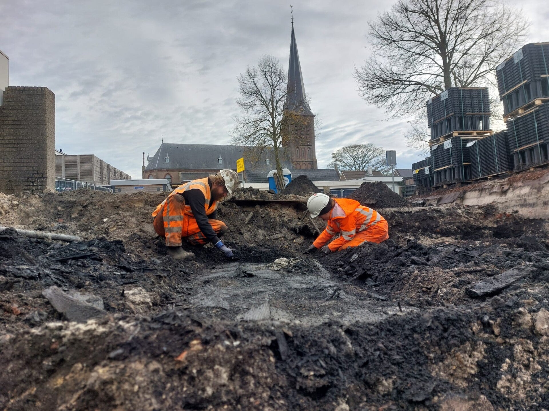 Aan het Achterom worden restanten van houten planken blootgelegd. Foto: André Pleszynski, Movares