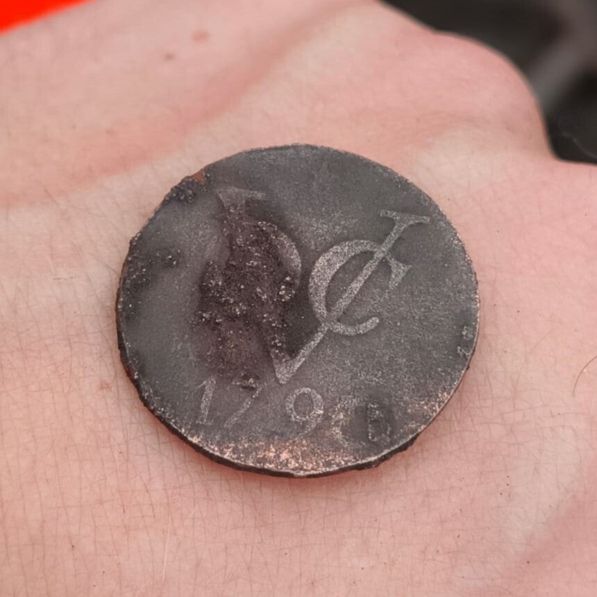 VOC-munt, Links voorzijde en rechts achterzijde 1790. Foto's: Piet Bouma, Movares.