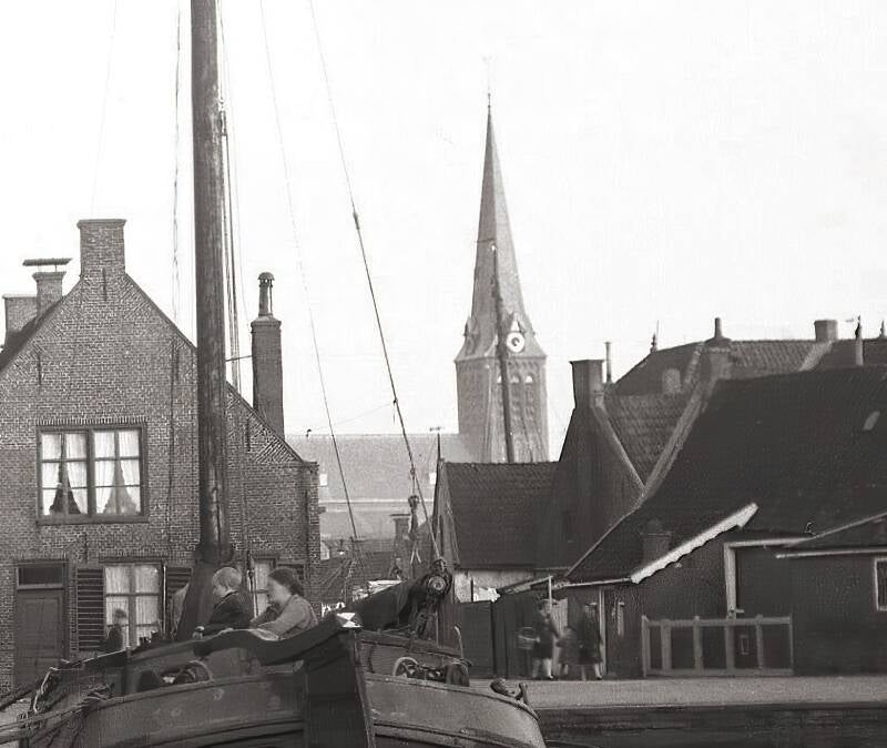 - Leeuwke Bootsma: De gracht liep van het Dok naar de Rien, is hier op deze foto al gedempt.