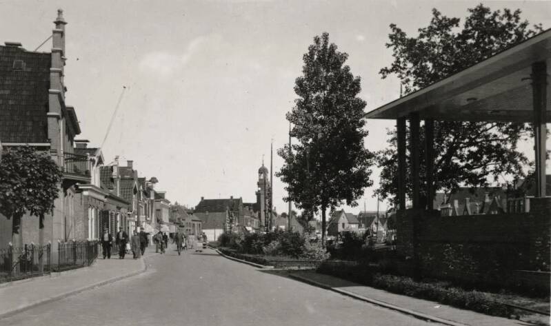 Op deze foto zien we een ladder aan de muur hangen. Direct achter het huis staat een gebouwtje, dat was de verfwinkel van Van Slageren. De schilder zelf heb ik niet gekend. Toen ik klein was woonde zijn weduwe er nog met haar dochter, die ook al jong weduwe was geworden. Haar zoontje IJme speelde wel met Willem, zoon van Chris van Slageren en mij, achter bij zijn oom en tante hier tegenover. IJme is in Indië gesneuveld, Willem is op de dag van de Bevrijding gestorven aan de verwondingen die hij bij het gooien van een Pantzerfaust door de Duitsers had opgelopen. Deze familie is niets bespaard gebleven.