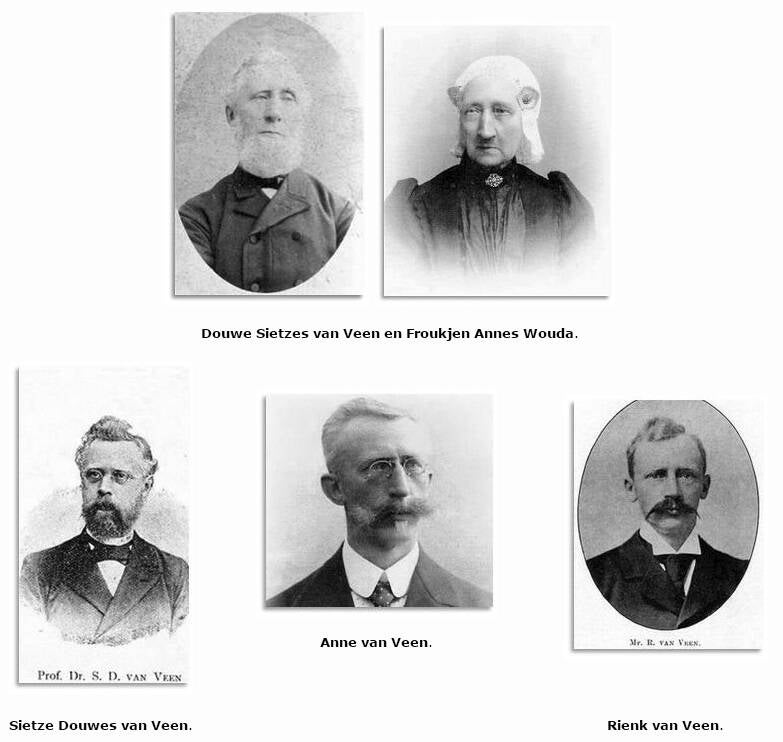 Zij hadden 8 kinderen, t.w. Pietertje (1854-1860), Sietze Douwes (1856-1924 ), Anne (1859-1861), Anne (1861-1933), Pietertje (1863-1934), Rienk (1865-19290, Minke (1869-1869) en Fokke (1869-1951), waarvan Sietze Douwes, Rienk en Anne rond 1885 voor studie naar Utrecht vertrokken. Sietze Douwes studeerde theologie aan de RvU en was predikant te Molkwerum, Rijperkerk Dedemsvaart Groningen en Rotterdam en werd in 1896 hoogleraar theologie (kerkgeschiedenis) aan de RVU. Anne studeerde medicijnen aan de RvU en was arts te Schermerhorn, Tzummarum en Nijland. Rienk studeerde rechten aan de RvU en was advocaat en procureur te Groningen en ’s-Gravenhage en van 1901-1922 lid van de Tweede Kamer voor de C.H.U. (district Dokkum). Hun dochter Pietertje was op latere leeftijd Lt. Kolonel in het Leger des Heils. Sietze Douwes is de overgrootvader van Hans van Veen uit NZ die deze foto’s ter beschikking stelde.