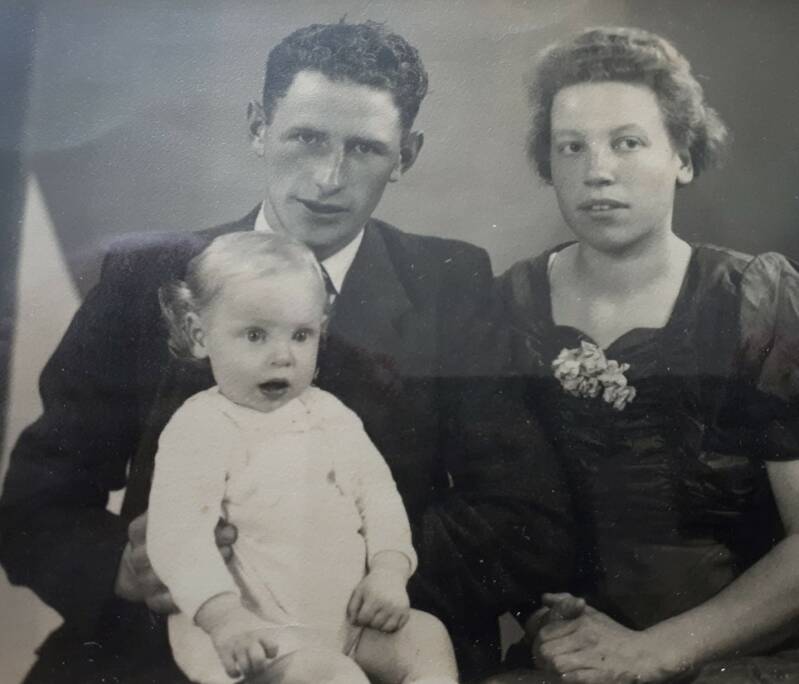 Foto van Tiny Ykema: Heit Eeltje Ykema en mem Rinske Ykema-Kuiper en Yke 1941
