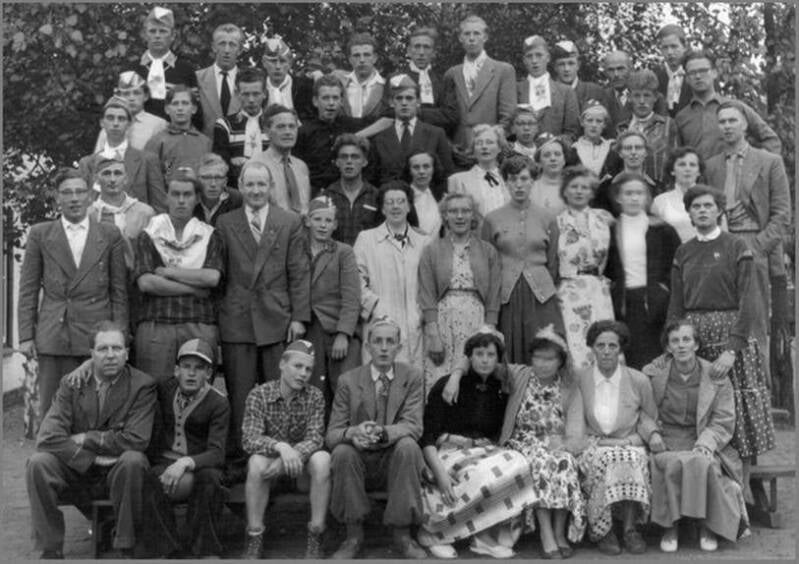 Volgende rij Hielke Scholten, Klaas Visser, onbekend, Marten Faber, Margje de Roo, onbekend, onbekend, Afke Klijnsma, Ukkie Poepjes.