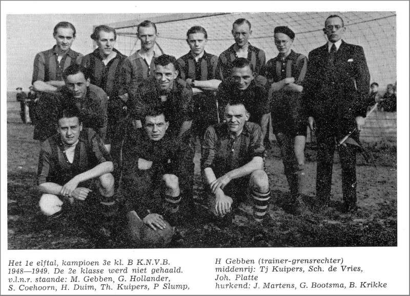 Staand: Boppe Bakker, ?, van der Heide, Posthumus, van Asselt, ?, de Kleine en Poppe Stilma. Voorste rij: R. Nijenhuis, Jaspers, Nieske de Jong, ?, Simon de Jong.