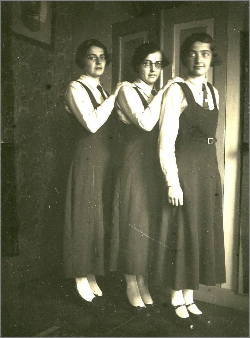 Foto van Klaas Faber: Katholieke Jeugd Vereniging, 3 zussen, Janke, Saakje en Jo Bosma.