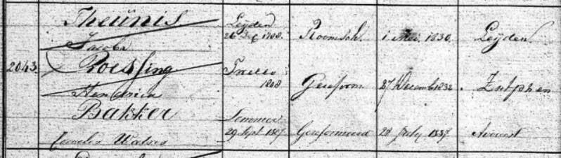 Leuk om te lezen na er gisteravond over gesproken te hebben! leeftijdsgenoot van Cornelis was Jan Ymes Bosma (1805-1868) mijn directe voorvader en schoenmakersknecht van beroep. Zijn zoon Yme Bosma (1837-1911) werd stoombootknecht en zijn zoon Louw/Louwrens Bosma (1870-1960, een aantal verwijzingen op deze website ook) werd hofmeester op o.a. de Groningen IV. Daar moet het brood van de familie Bakker ongetwijfeld ook een plek gevonden hebben.