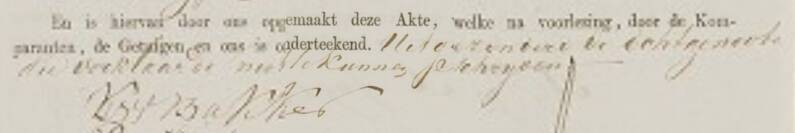 Ondertekening door Cornelis Wietzes Bakker van de huwelijksakte, 14 juni 1854