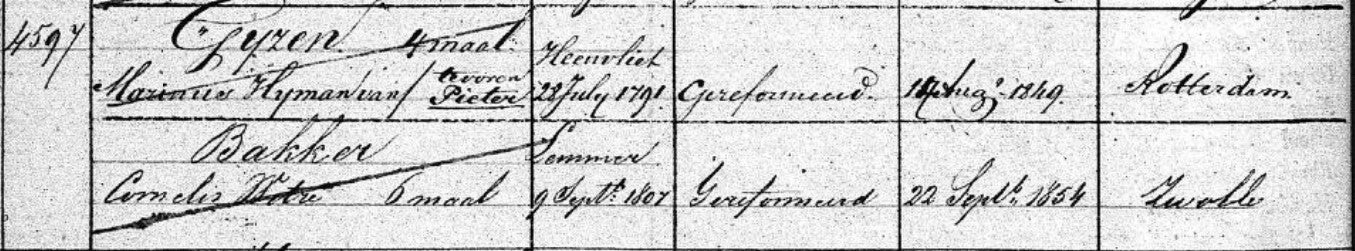 Laatste inschrijving van Cornelis Wietzes Bakker, 22 september 1854