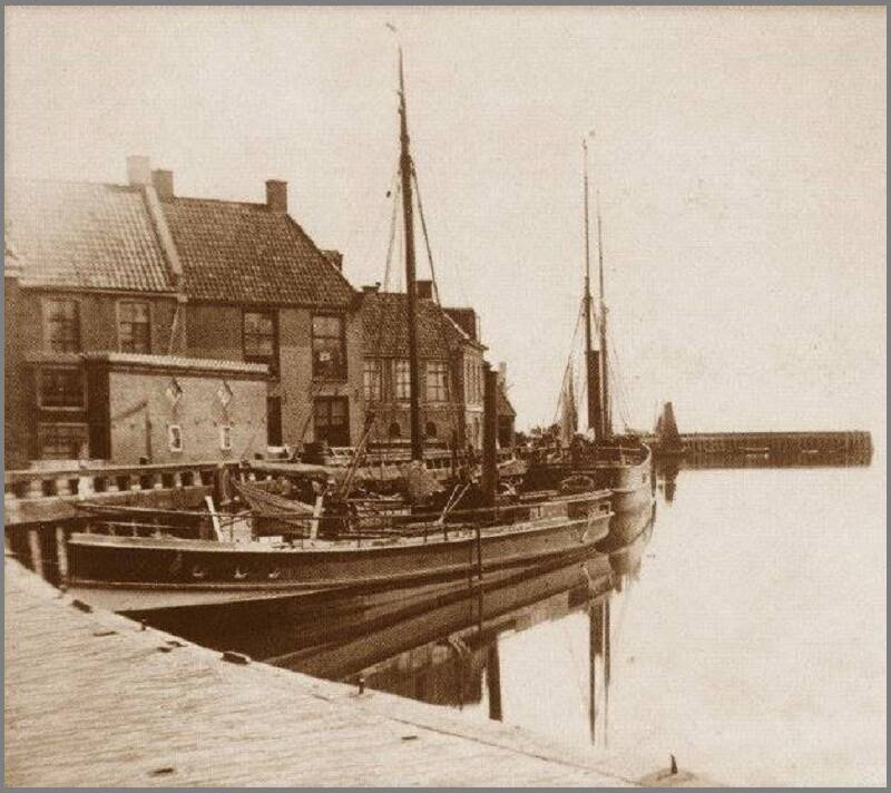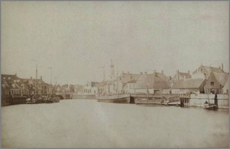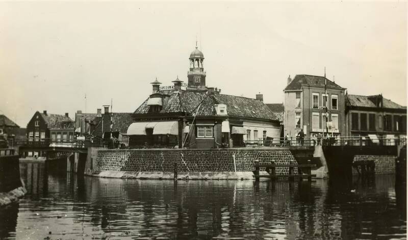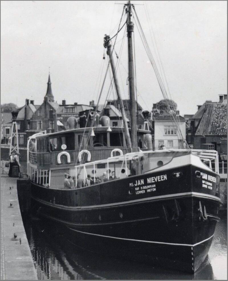 Deze afbeelding toont een opname van de Binnenhaven, vermoedelijk gemaakt in de jaren dertig. Aan de linkerzijde is de zijkant van het pand van Molenberg zichtbaar, direct daarnaast bevindt zich het gebouw van de Groningen-Lemmer Stoomboot Maatschappij. Op de zijkant van dit pand is de tekst "Amsterdam Groningen Lemmer" weergegeven. Verderop is vermoedelijk de zijkant van de boerderij van Zwarthoed te zien.