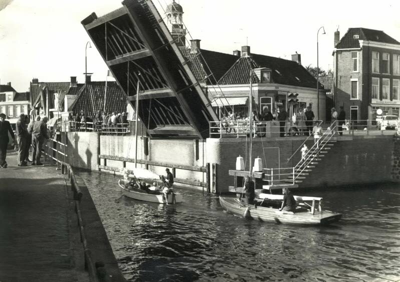 Hier manoeuvreert een zeiljacht behoedzaam door de Truitjezijlsbrug. Voor de brug wachten passanten geduldig tot deze weer gesloten wordt. Echter, dit kon een uitdaging vormen voor de brugwachter wanneer dit rond het middaguur plaatsvond. Op dat moment stonden de arbeiders van de Houtmolen en de scheepswerf ongeduldig te wachten om hun werk te hervatten. Dit leidde regelmatig tot het uitwisselen van opmerkingen tussen de betrokkenen.