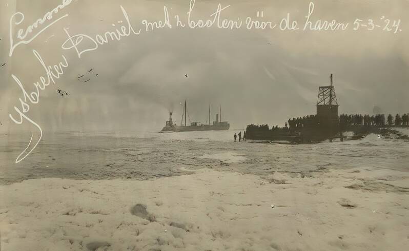 De ijsbreker 'Daniël', behorend tot de rederij v.h. Gebr. Goedkoop, vergezeld door onder andere de 'Heemstra', een vrachtschip dat destijds op Kampen actief was.