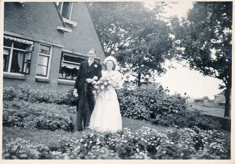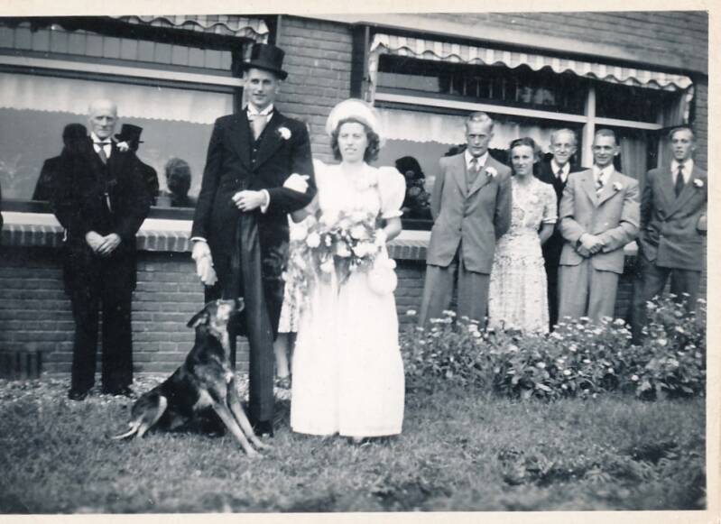 Nu volgen acht foto's van Klaas Ate de Boer: Trouw foto’s genomen op de Cornelia-Hoeve in de eind jaren 40: Onbekend, Anneke de Boer, Boukje Wijnja, Oed Zeilstra, onbekend.