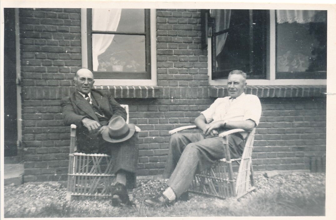 Op de foto zien we: Folkert Rommerts Semplonius, die zich na de overname van zijn bedrijf door zijn zoon Hielke, als rentmeester aan de Vissersburen vestigde, waar hij al meer dan 90 jaar oud in 1924 overleed. En zijn zoon Hielke Folkerts met diens dochtertje Minke (1908) één van zijn 8 kinderen.