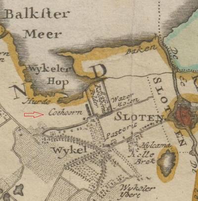 Bron: www.frieskaartenkabinet.nl Een deel van de kaart toont het landgoed van Menno van Coehoorn, gelegen ten noorden van het dorp, evenals de 'Menno van Coehoorn'-polder die grenst aan het Slotermeer. Menno van Coehoorn liet een polderdijk aanleggen, wat heeft geleid tot het ontstaan van deze polder. De dijk is tot op de dag van vandaag behouden gebleven.