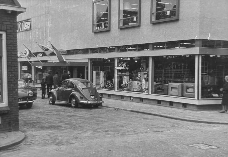 In de kelder zaten S. Breimer met een lunchroom & Fa. Gort met een wasserette en huishoudelijke artikelen.