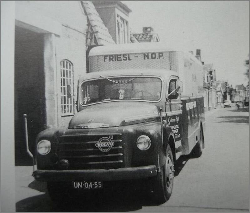 Foto van Jappie Kuipers: Vrachtrijder "Van der Bijl" de foto is genomen naast hun garage aan het Turfland te Lemmer.