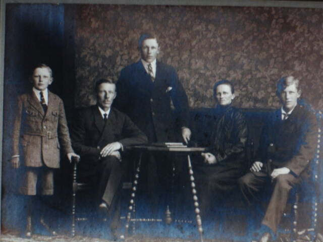 brandstofhandel R Verhoeff in he pand De goede verwachtig met een familie foto.