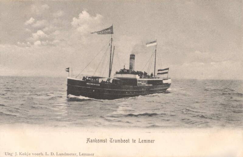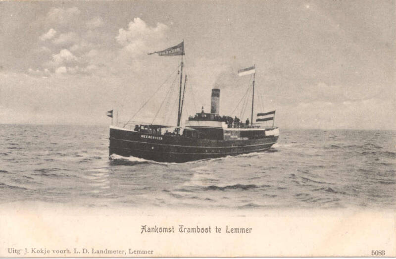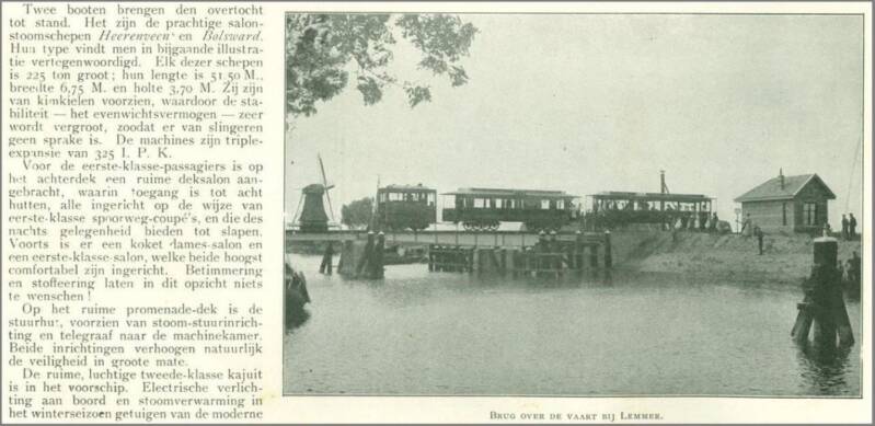 - Leeuwke Bootsma: Met de vermelding ,,Tramboot op Bolsward,, is een foutje gemaakt. Samen met de ,,Heerenveen,, waren dit de eerste tramboten die de dienst Lemmer -Amsterdam onderhielden. Vermoedelijk is deze foto gemaakt bij de opening van de tramlijn Lemmer-Joure op 12 augustus 1901.