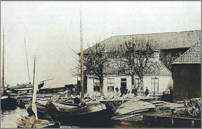 De scheepswerf van Van der Zee in Joure, opgericht in 1899. Op de achtergrond, zichtbaar op de helling, bevindt zich de boeier ‘Friso’, die later zou uitgroeien tot het Statenjacht.