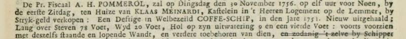 Verkocht ten huize van Claas Meinardi in het Heerenlogement te Lemmer.