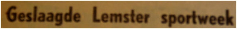 De kerstvakantie is net voorbij en in het Rienplan wordt een tot dan gebruikt belasting kantoor aan de Wiepke Hofstraat omgebouwd tot kleuterschool, zodat de Aak er nu een Vlet bij krijgt. Er is een Lemster tennis vereniging in oprichting. De IJsvereniging Lemmer krijgt de beschikking over een nieuwe IJsbaan die met een grote langebaan-afvalwedstrijd voor heren op 10 januari zal worden geopend.