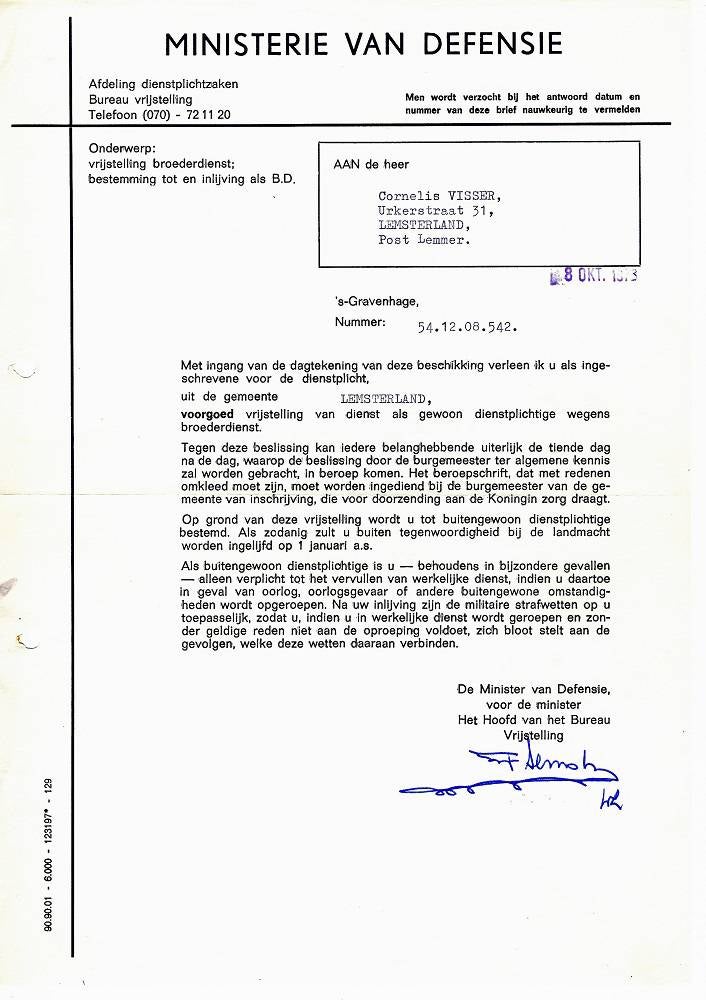 Ik krijg het definitieve af bericht voor de militaire dienst en moet nu gaan afwachten hoe het met de BB (Bescherming Bevolking) zal gaan. De bieten campagne begint weer en is het dus weer uitkijken als je met de fiets de polder in moet. Met voetbal gaat het goed, we winnen thuis met 3-0 van Irnsum en met 8-0 van Surhuisterveen.