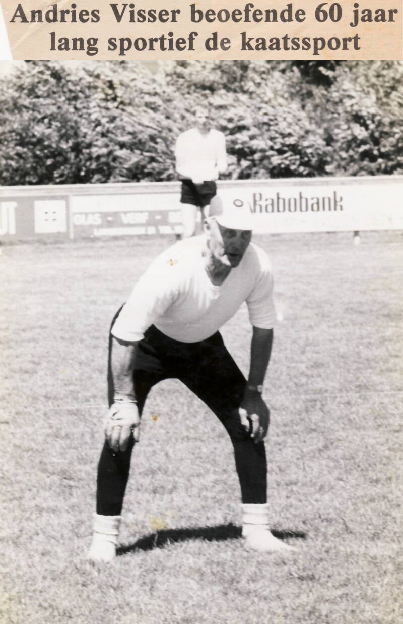 Mijn vader in zijn karakteristieke houding en in zijn lange kaatsbroek