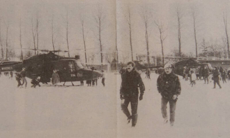 Dat het voetbalveld ook nog voor andere doeleinden wordt gebruikt, bleek op de dinsdagmiddag daarna, toen een squadron van zes helikopters, onderweg vanuit Engeland, boven het IJsselmeer in een sneeuwstorm terecht kwam en de piloten besloten de toestellen zo snel mogelijk aan de vast grond te zetten. Sneeuw en ijs zorgen voor verschillende reacties, de Lemster kinderen zijn in de ban van de ijs- en sneeuwpret, er kan zelfs op het IJsselmeer worden geschaatst, terwijl in Friesland de sneeuwruimers onafgebroken op de Friese wegen aan het werk zijn om het verkeer op gang te kunnen houden. Terwijl de meteorologen aanhoudende vorst voorspellen. Houden wij als jeugdcommissie, samen met die van C.V.V.O., schaatswedstrijden.