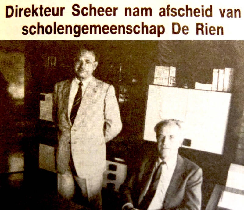 Na de fusie van de Christelijke en Openbare scholen voor Voortgezet Onderwijs in Lemmer, waar ik al weer vele jaren werk, tot Samenwerkings Scholengemeenschap “De Rien”, startte men met een tweekoppige (van beide scholen één) leiding, bestaande uit de heren Wim Scheer en Jan Broere. Na zeven jaar komt er een einde aan deze constructie, de heer Scheer vertrekt naar een Lagere Technische School in Ede en dan blijft er nog alleen Jan Broere als directeur over. Wel ligt al vast, dat als de heer Broere stopt, hij zal worden opgevolgd door een nieuw te benoemen directeur die dan van Christelijke huize zal zijn. In het vervolg zal het zo steeds om en om gaan, met een Christelijke en dan weer een Openbare directeur, is de bedoeling.