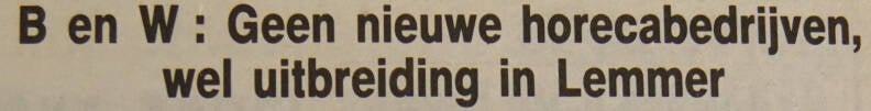 Burgemeester en wethouders van Lemsterland, komen met diverse voorstellen om te voorkomen dat er in het bestemmingsplan “Lemmer-Kom” een zodanige wijziging zou komen die nieuwe horecabedrijven in dit gebied zou toestaan. Men wil niet meer horeca in het centrum, dan de nu al bestaande panden. Uitbreiding van bestaande panden mag nog wel. Zo wordt ook tegengehouden dat in het winkelpand van “Foto Werner” een aangevraagde speelautomatenhal zal worden gevestigd. Dit vooral om overlast op die plaats tegen te gaan, van parkerende auto’s en luidruchtige bezoekers. Daarmee wordt tevens, hoewel dit niet wordt genoemd, bereikt dat “Onder de Hoek” blijft bestaan en ook het aanzicht van een beeldbepalend pand in het centrum van Lemmer, niet wordt gewijzigd.