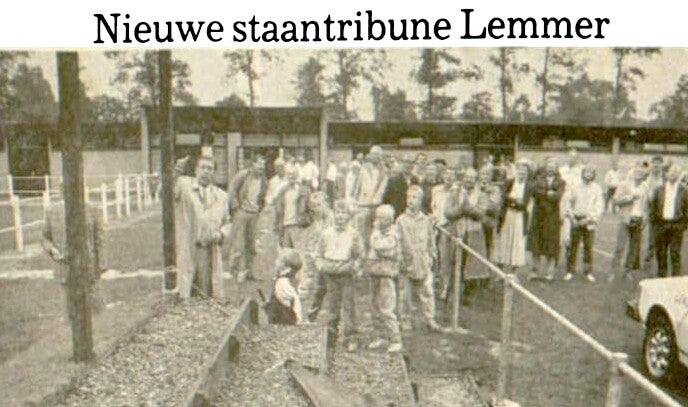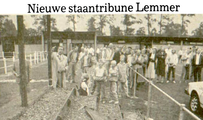 Tijdens een vriendschappelijke wedstrijd tussen PEC-Zwolle ’82 en een regionaal samengesteld elftal van verenigingen uit de buurt van Lemmer, dat met 5-0 door de eredivisionist wordt gewonnen, wordt de nieuwe staantribune van de v.v. Lemmer geopend. Burgemeester Eijgelaar snijdt hiervoor het touw door en een staanplaats voor plusminus 800 toeschouwers is hiermee officieel toegevoegd aan het sportcomplex in het Lemstervaart.
