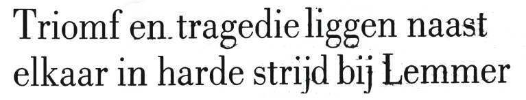 Er is weer een Lemster die in de picture komt om bekend te worden buiten Lemmer. De 18-jarige Rintje Ritsma stelt tijdens recordwedstrijden voor de jeugd, met uitstekende tijden en winst op de 1500, 3000 en 5000 meter zijn kandidatuur voor de jeugdkernploeg van Leen Pfrommer, die daar eerst nog met reserves tegenover stond en liever vasthoudt aan de rijders die hij al langer onder zijn hoede heeft, maar nu eigenlijk niet meer om Ritsma heen kan. Ja en wij als Lemmer 3 laten ook in en tegen Bakhuizen 2 zien, uit wat voor het juiste hout Lemsters zijn gesneden. We winnen op een moeilijk bespeelbaar veld met 0-3 en staan even alleen bovenaan.